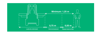 工作场所技术指南规定,绝对最小距离为 1.25 米,即 75 厘米的安全距离加上 50 厘米的会合距离。