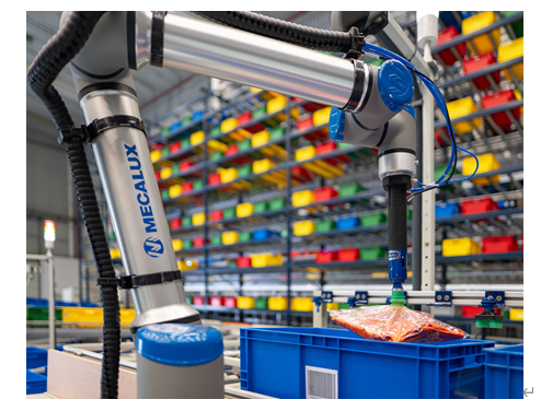美加乐推出新的协作机器人分拣解决方案美加乐推出了两款基于 Simatic Robot Pick AI 技术的协作拣选解决方案:第一款协作机器人经过编程,可与操作员安全共用一个工作站;第二款协作机器人可在高性能拣选站内自主工作。Mecalux 的拣选解决方案专为连续操作而设计,每小时可进行多达 1,000 次拣选操作。