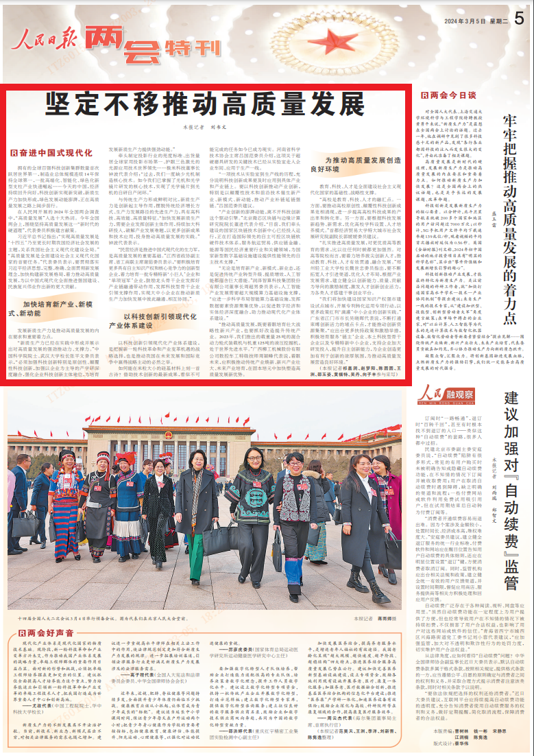 今年全国两会上,围绕坚持高质量发展这一“新时代的硬道理”,代表委员积极建言献策。