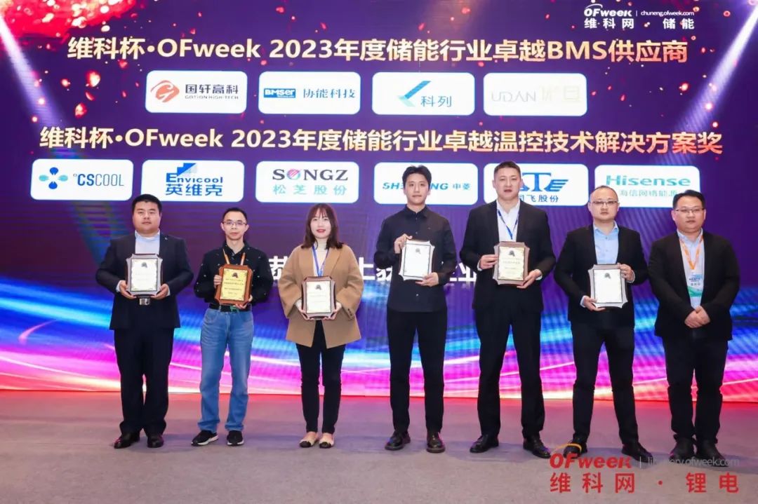 ▲优旦科技荣获“2023年度储能行业卓越BMS供应商”(右三)
