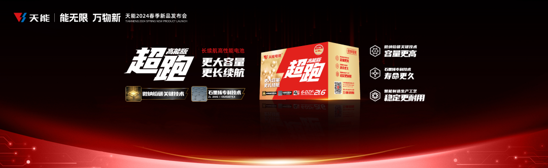 天能铂金电池新发布的“开拓者”和“大动力”两款产品,均采用了多元复合稀土合金、美国木素、石墨烯专利技术及四段法高温固化技术,使电池的循环使用寿命与续行里程,相较普品有两位数的提升。