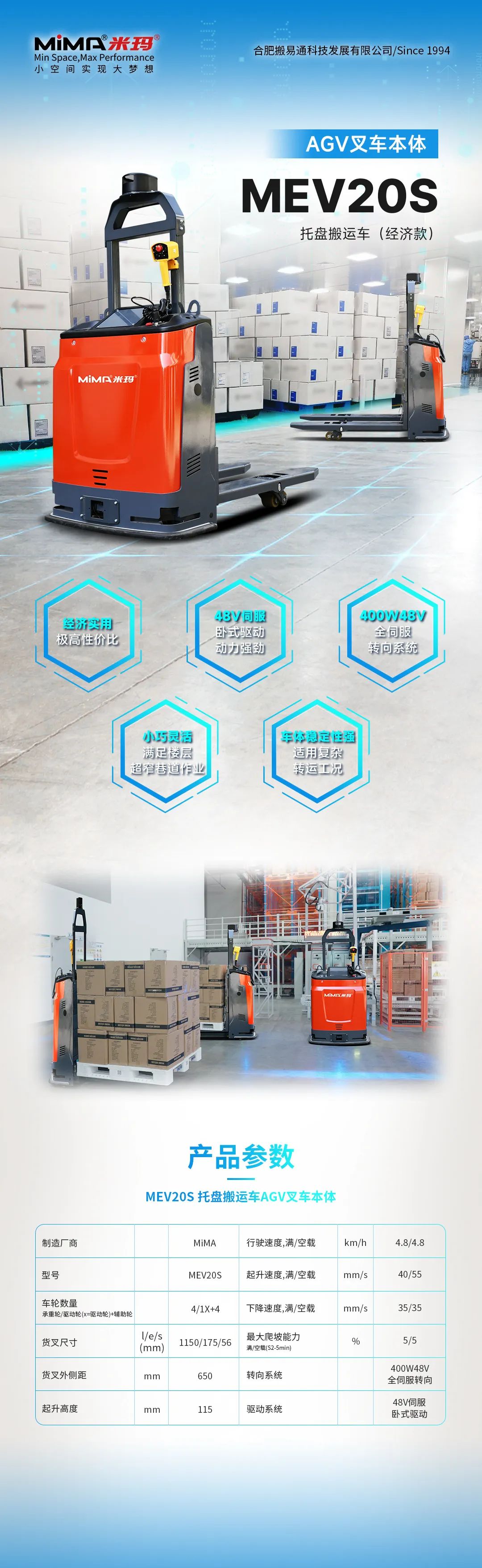 MiMA米玛电动托盘搬运车经济版-MEV20S,携实车操作视频重磅来袭!新一版本继承原有搬运车的优势功能——“核心参数不变,性能不减”,实现降本增效,智能升级,给消费者带来全新的“经济、高效、安全”的搬运体验。托盘搬运车的重量轻、体积小,更适合在狭窄的空间内作业,价格低,进一步扩大了应用范围。
