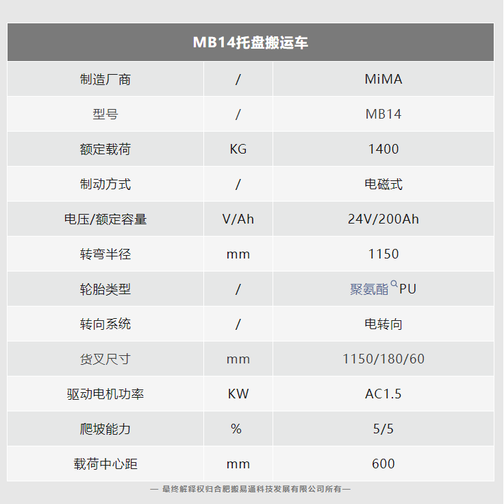 1、小吨位货物堆垛:车型额定载重1400KG,电磁式制动,搬运作业平稳灵活;
