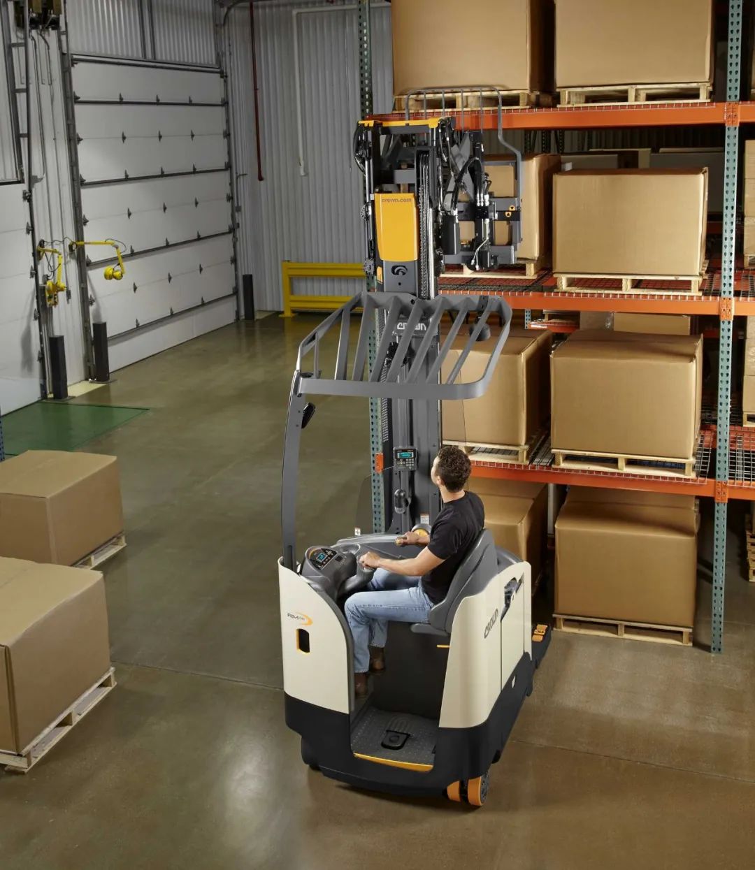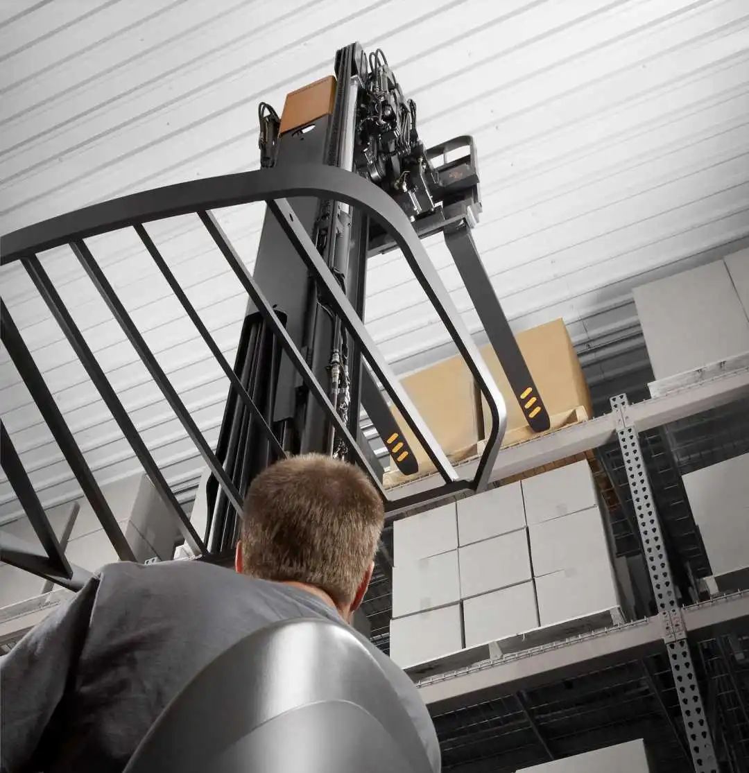 在繁忙的日常作业中,操作员需要时刻保持对周围环境的警觉,宽阔的视野能够提供更多的信息,帮助他们做出正确的决策和操作。驾驶科朗RMD系列前移式叉车时,无论是高处、视平线还是地面作业,操作员视野一览无余。