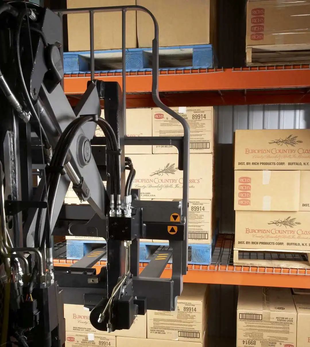 操作员通过“视窗”货叉,清晰可见货物的位置, 同时通过集成侧移装置与指示器使货叉重新居中更加简单。