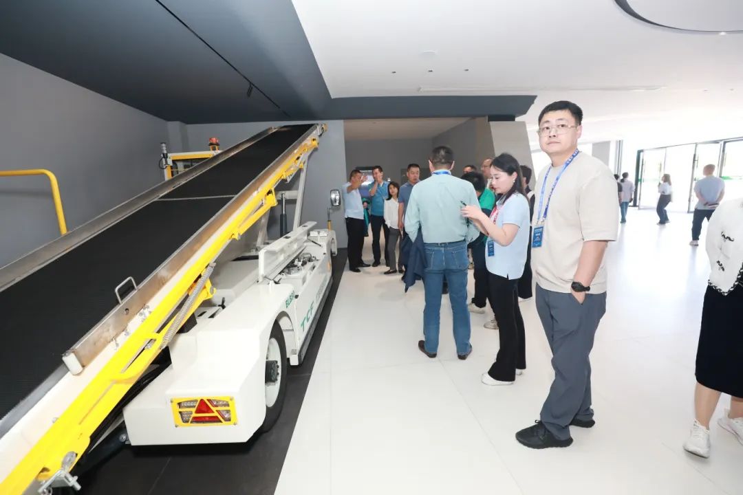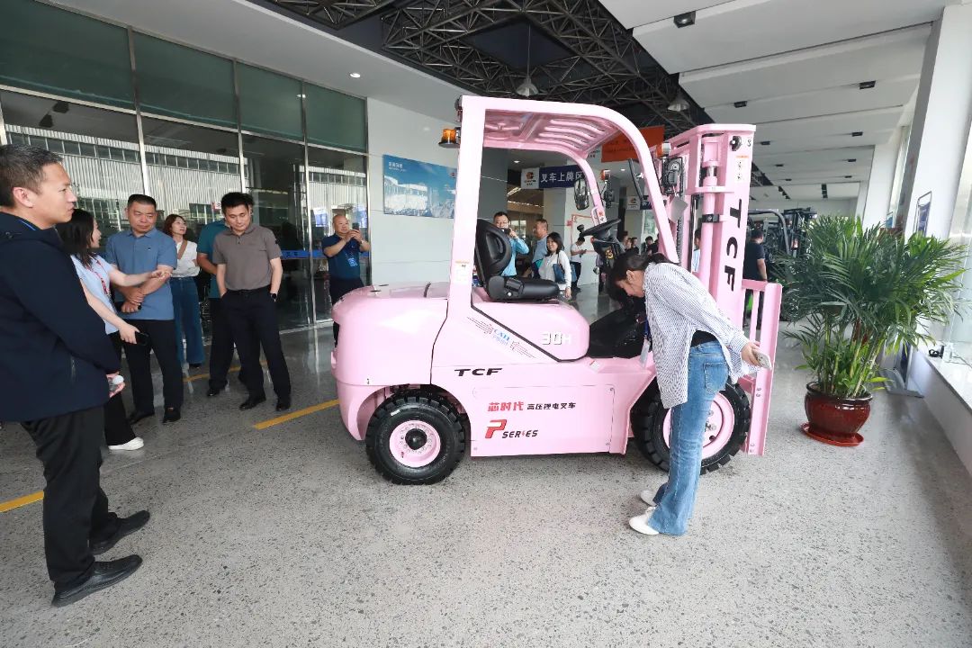 TCF特别安排了叉车厂区和民航厂区的参观考察活动。与会者可以近距离观摩TCF无人驾驶的现场作业场景模拟、AGV智能仓库、真空吸盘机械手的操作演示,同时展厅展出了进行粉色涂装的超级爆品“芯时代”系列高压锂电叉车、机场地坪经常使用的各种款式行李牵引车、散装货物装载机、电动散装货物装载拖车等产品。