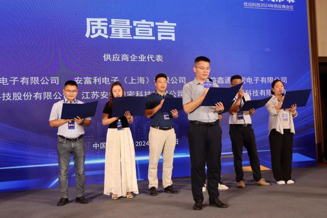 随后,优旦科技供应链总监何超带领6位供应商企业代表宣读了共同质量宣言,庄重承诺严格遵守质量标准,追求卓越,持续改进,以超越客户预期的产品与服务赢得客户依赖。