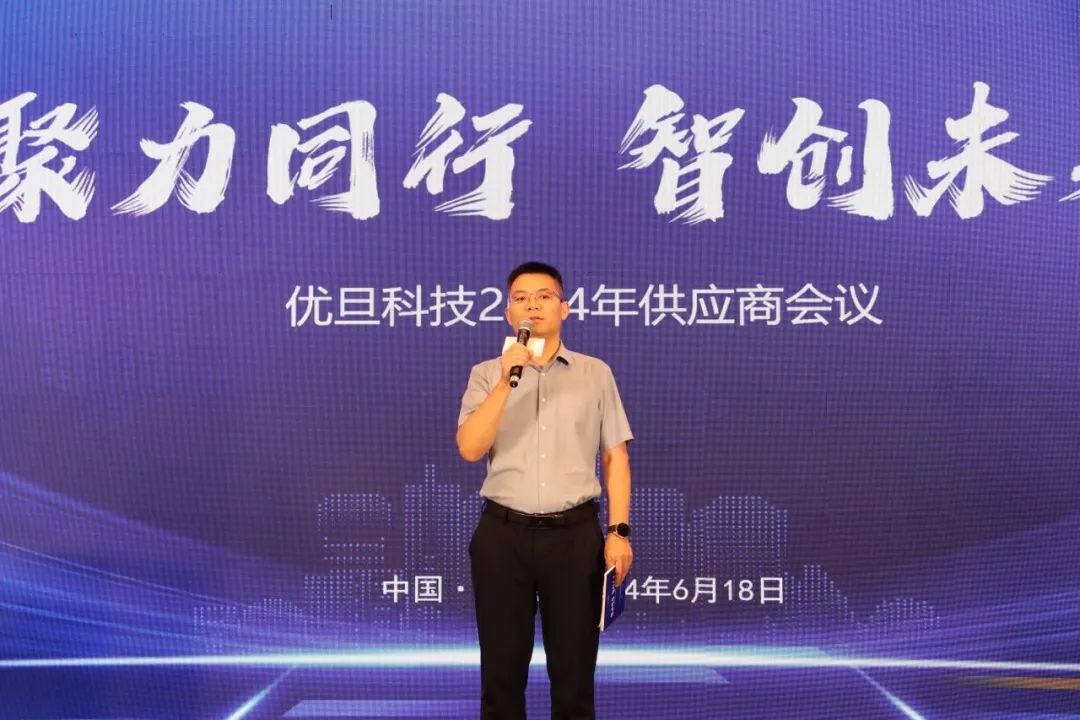 会议伊始,优旦科技供应链总监何超作为开场主持人,向到场的供应商伙伴表示热烈欢迎与诚挚感谢,期待通过此次会议与各位供应商伙伴进一步加强精诚合作,把握市场脉搏,共同推动行业创新与发展。