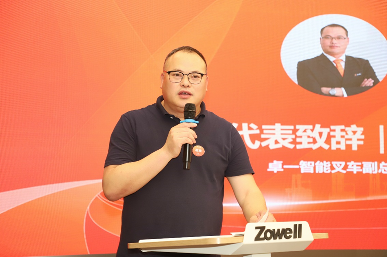 卓一智能叉车副总经理吴延涛致欢迎词,我们今天在此欢聚一堂,共同见证卓一智能叉车这一重要时刻。我谨代表卓一智能叉车的全体员工,向各位嘉宾的莅临表示最热烈的欢迎和最衷心的感谢!