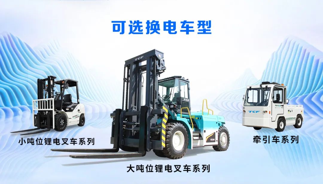 TCF 智能换电解决方案具有广泛的适用性,TCF充分考虑到不同工况的多样化需求,可提供个性化的定制服务。无论是小型灵活的叉车,还是大型重载的叉车,甚至是民航地面设备,TCF均可提供“换电版”车型,支持客户部署“光伏储能一体式换电站”,为客户量身定制最适配的换电方案,确保每一辆车都能在其特定的工作环境中发挥最大效能,实现效率与效益的双重提升。