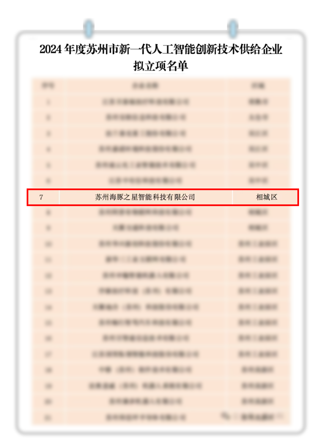 喜报!海豚之星成功入选苏州市新一代人工智能创新技术供给企业