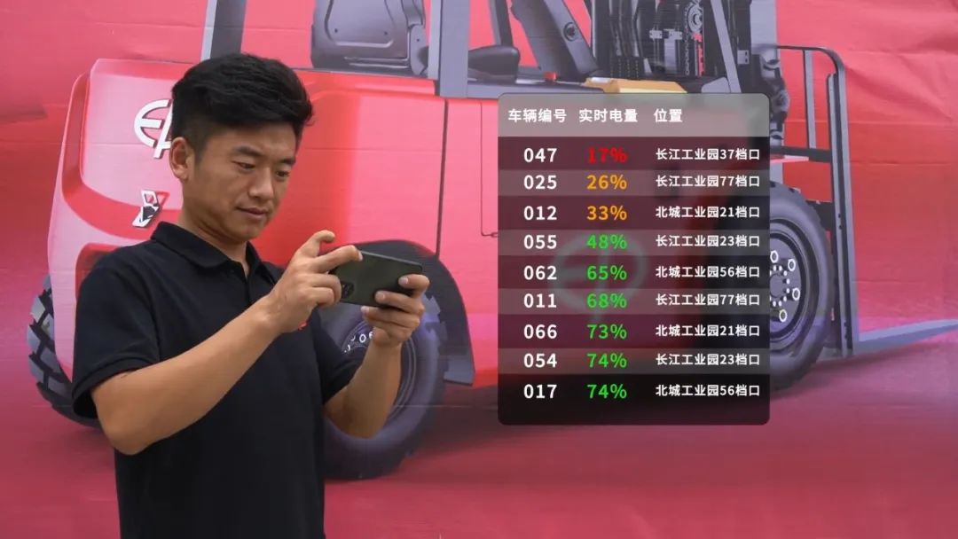 针对该园区面临的种种难题,中力提出“X4+换电站”解决方案,X4锂电叉车采用手提换电设计,仅需2分钟即可快速完成车辆换电。换电站实现对电池的统一充电与管理,有效解决物流园区用电安全这一巨大难题!