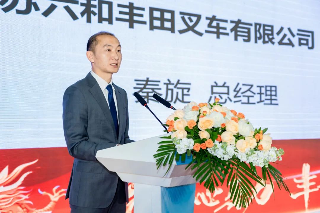 接下来,由江苏六和丰田叉车有限公司总经理秦旋先生发表欢迎致辞。他表示,江苏六和自成立以来,一直秉承着“诚恳做人、实在做事、服务至臻、客户至上”的经营理念,致力于为广大客户提供高效、可靠的物料搬运解决方案。在经济下行的当下,江苏六和也在不断自省,不断思考,如何才能想客户所想急客户所急,为客户降本增效提供更优方案。而今天为大家带来的的各种安全及降本增效的解决方案,希望对大家有所启发、有所裨益。