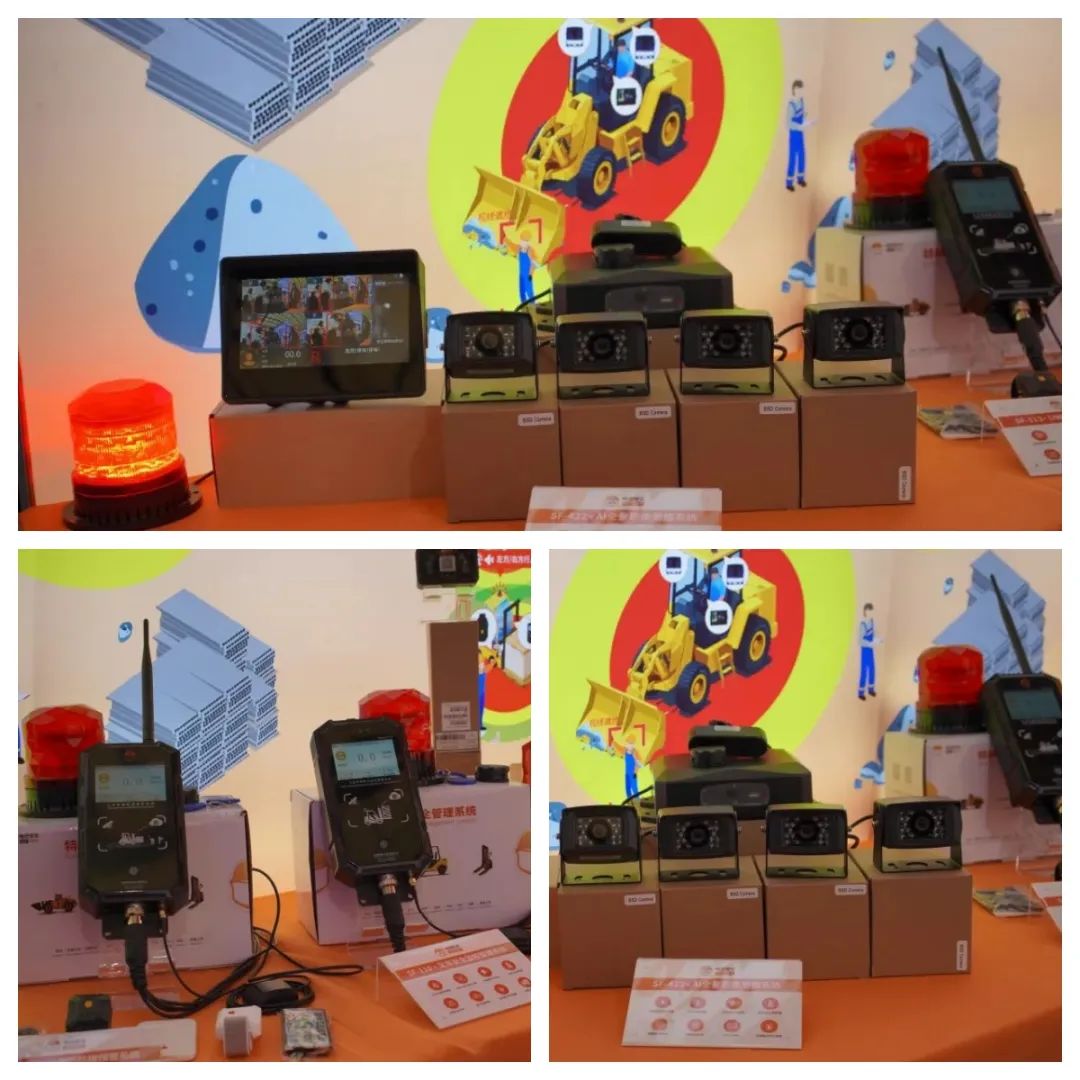 另外,SF-113 UWB测距防撞预警系统利用UWB技术实时检测基站与标签之间的相对位置,精度可达到10CM,人员标签进入警告区域时可通过振动/蜂鸣声传达危险信号,并具备SOS一键报警功能。我们还展示了SF-110智慧叉车管理系统和SF-152人脸识别司机权限采集器等产品。