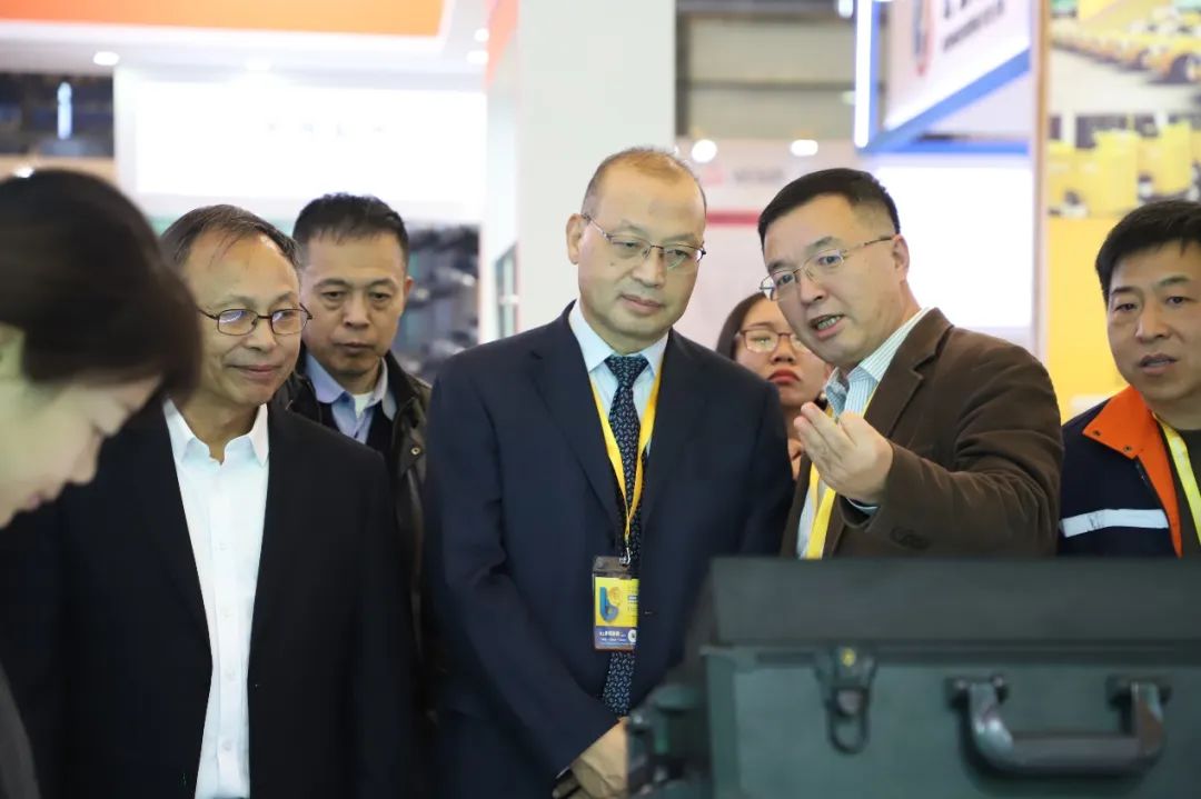 展会期间,中国工程机械工业协会秘书长吴培国、中国工程机械学会秘书长周贤彪、中机科(北京)车辆检测工程研究院总工程师陈宝强、中国工程机械工业协会工业车辆分会秘书长张洁、中国工程机械工业协会装修与高空作业机械分会秘书长蒋燕等一众行业领导亲临凡己科技展位,与凡己科技董事长孟凡己先生及董事副总经理张平化博士共同为新品揭幕。