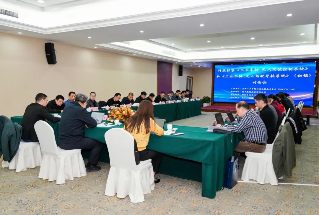 转载 2024-12-12 10:16 工业车辆标委会 来源:工业车辆标委会2024年12月10日至12日,全国工业车辆标准化技术委员会(以下简称“工业车辆标委会”)在浙江省杭州市组织召开了《工业车辆 无人驾驶控制系统》和《工业车辆 无人驾驶导航系统》(初稿)讨论会。参加会议的有工业车辆标委会部分委员、标准起草工作组成员及工业车辆标委会秘书处人员共20个单位24名代表。工业车辆标委会主任委员唐超,杭叉集团股份有限公司总经济师、杭叉智能科技公司董事长任海华应邀出席会议。
