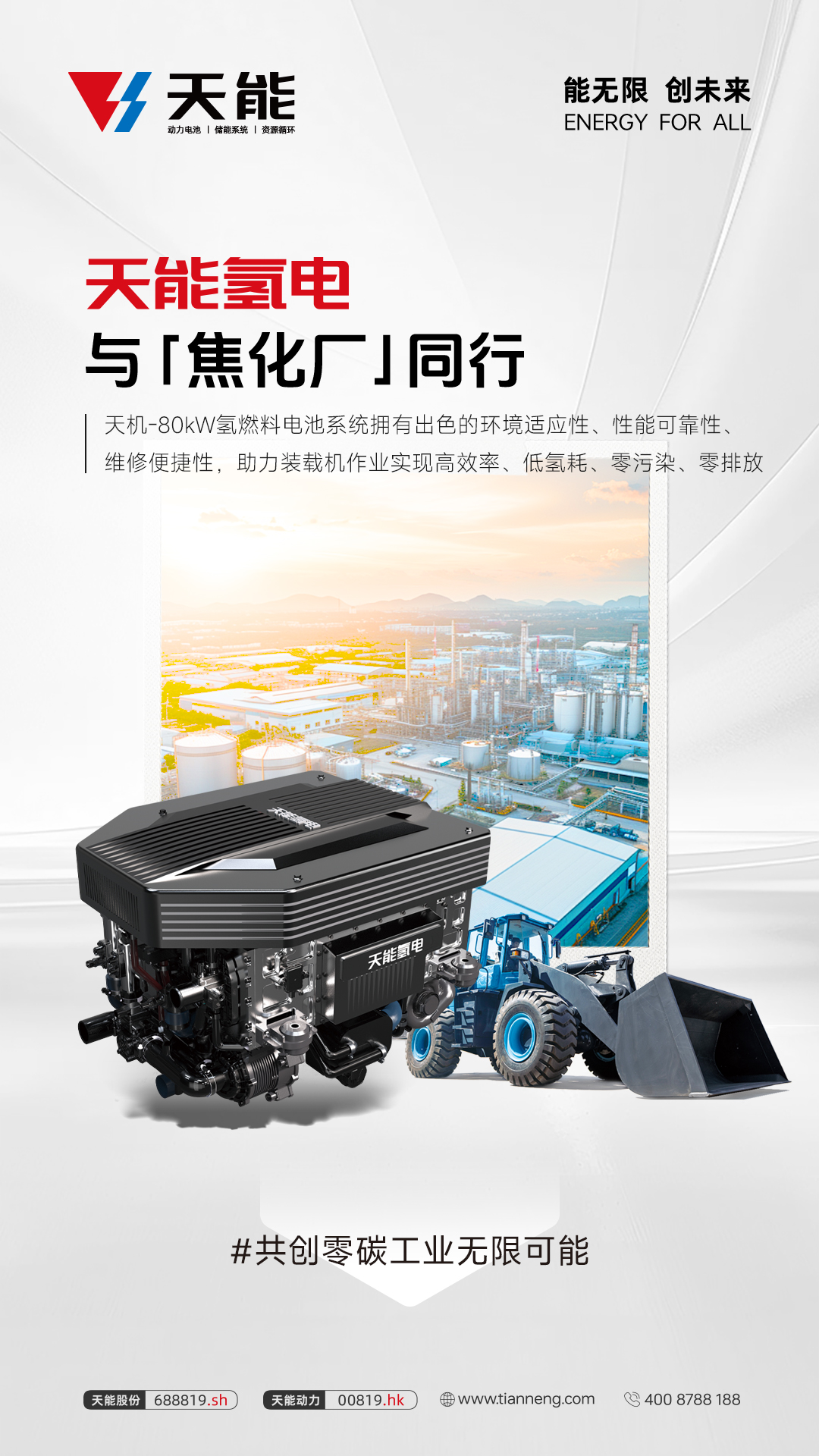 为此,焦化厂选择与天能携手,启用搭载天机-80kW氢燃料电池系统的装载机,实现煤粉作业的更高效、低能耗、近零碳。