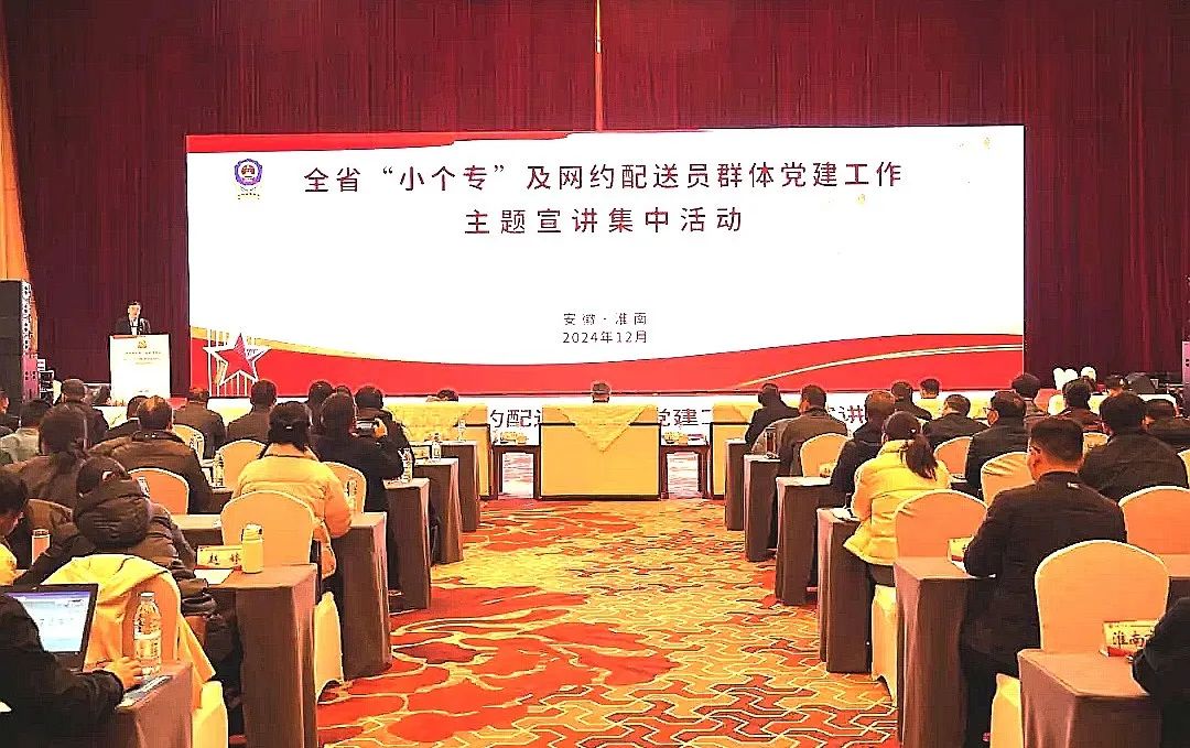 12月9日至10日,2024年全省“小个专”及网约配送员群体党建工作主题宣讲集中活动在淮南市举行。省委社会工作部相关负责同志、省“小个专”(网约配送)综合党委部分委员及全省“小个专”及网约配送员群体党建工作者、党组织代表120余人参加了活动。