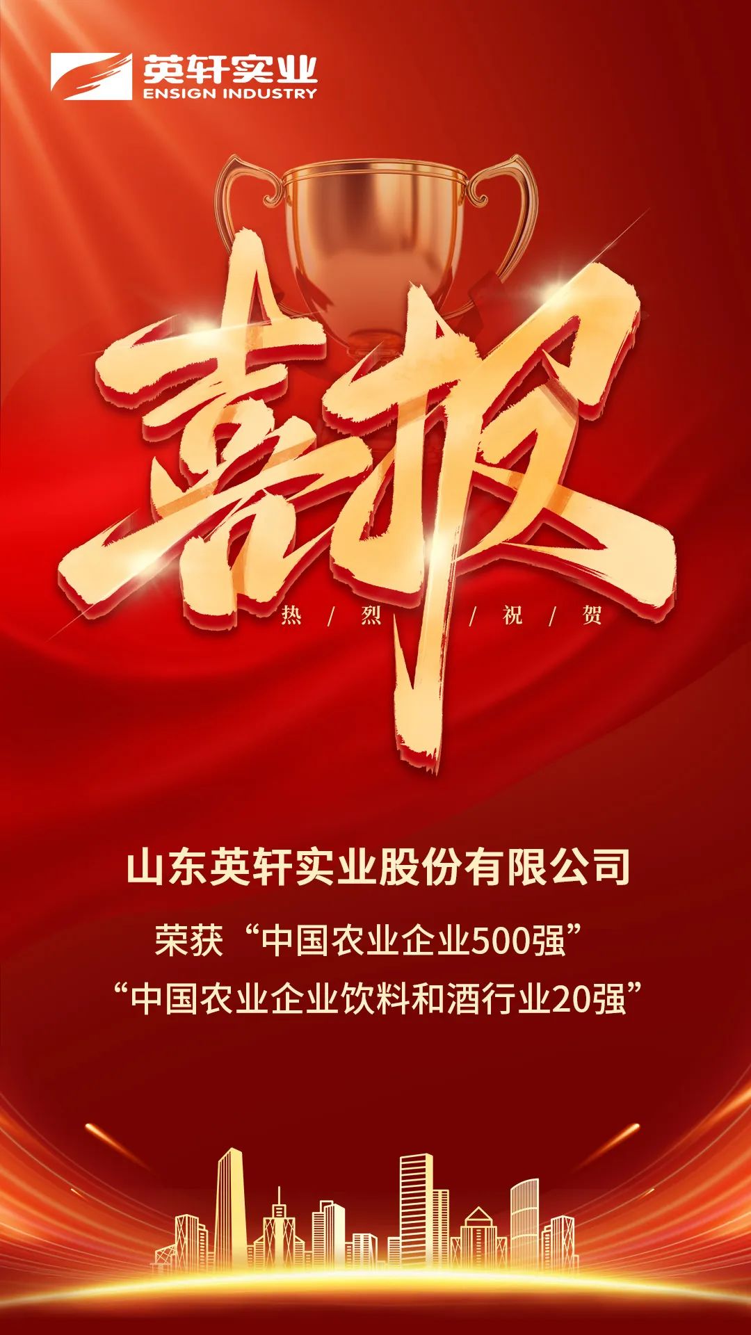 英轩实业荣获“2024中国农业企业500强”、“中国农业企业饮料和酒行业20强”