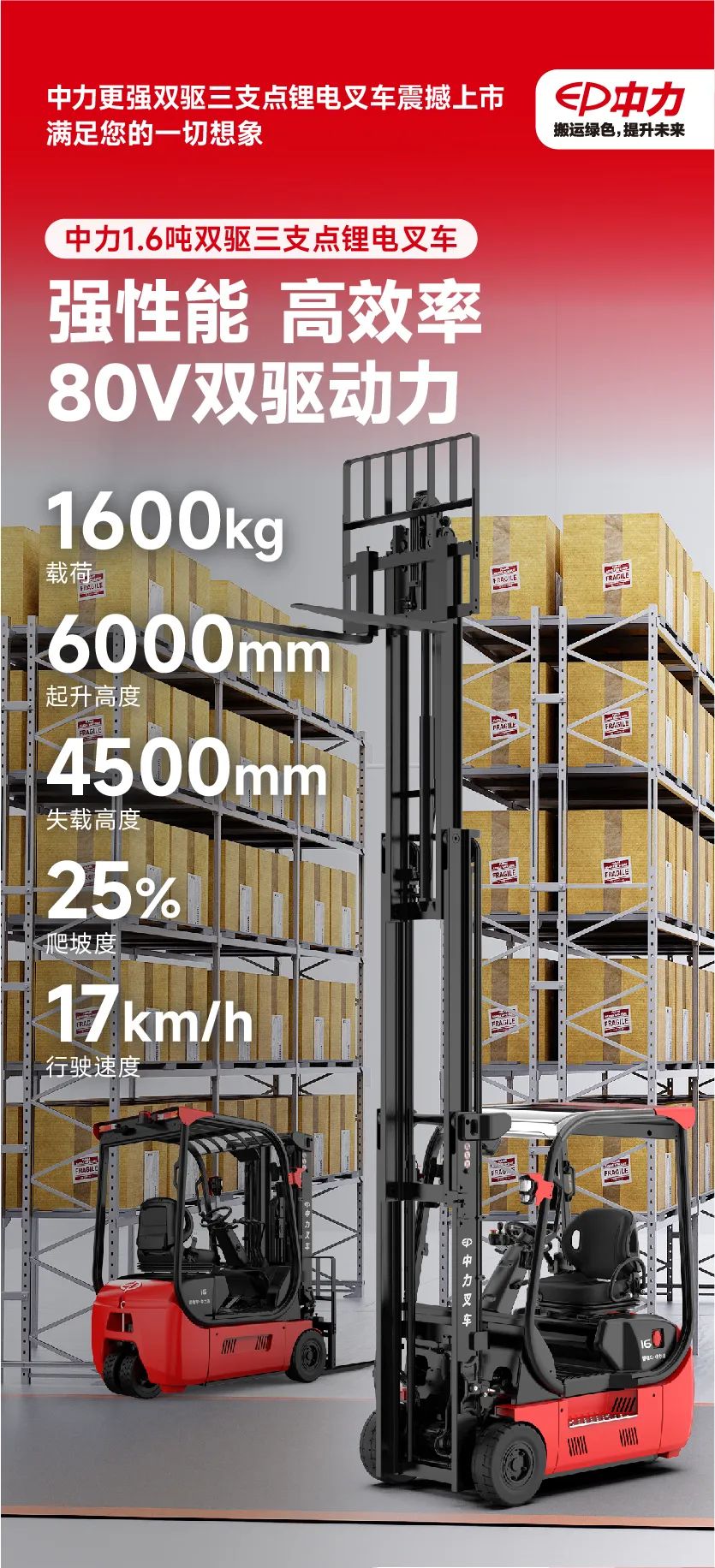 安徽合力G3系列1.3-2t前轮双驱三支点锂电叉车