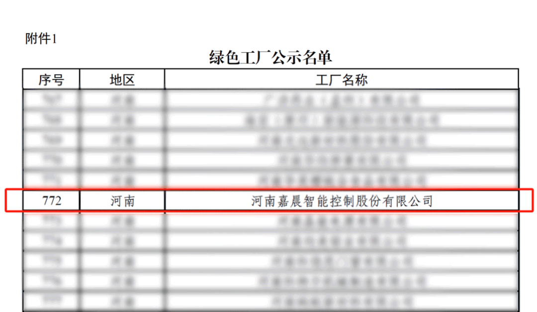 12月16日,工业和信息化部公示了2024年度绿色制造名单,河南嘉晨智能控制股份有限公司成功入选,获评国家级绿色工厂。