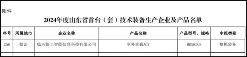 喜报!临工智科65T室外重载AGV:荣获2024山东首台(套)技术装备生产企业及产品认定
