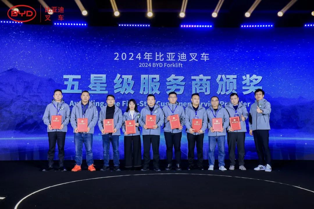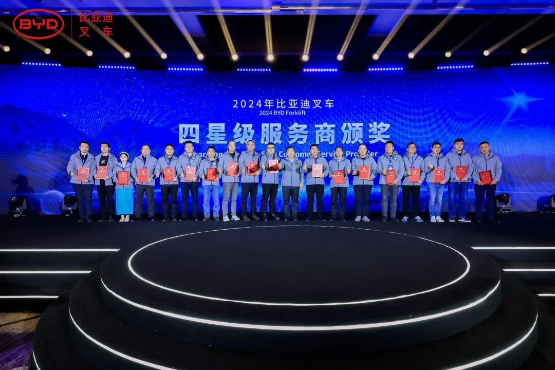 会议期间,比亚迪叉车对过去一年表现卓越的经销商进行了表彰。五星级和四星级服务商也首次在经销商大会上获得奖项,标志着比亚迪对服务商贡献的认可与激励达到了新的高度。