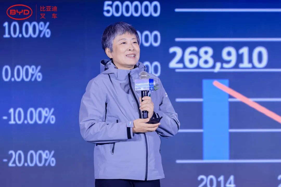 大会伊始,比亚迪叉车销售总监陈丽萍致欢迎词。她首先对与会经销商伙伴、媒体朋友和各位嘉宾表示热烈欢迎,并对他们在过去一年中对比亚迪叉车的支持表示衷心感谢。陈丽萍强调,比亚迪叉车秉承集团深厚的工程师文化,坚持以技术创新为核心驱动力,致力于将叉车制造优势发挥至极致,构建品质、成本、效率三位一体的竞争优势。她指出,比亚迪叉车坚持走特色发展道路,持续深耕市场,把握机遇,不断完善产业生态圈,助力经销商实现更大发展。面对2025年的市场挑战,陈丽萍表示,比亚迪人将继续保持对市场的敬畏、对创新的追求以及对合作伙伴的支持,并对2025年销售目标充满信心。
