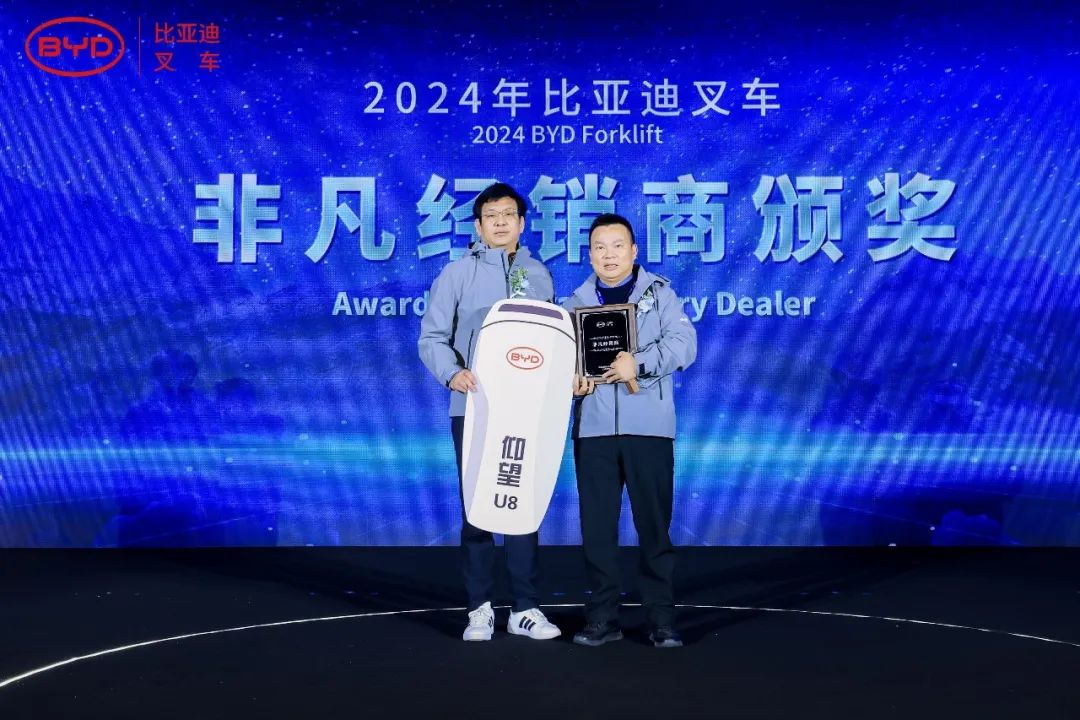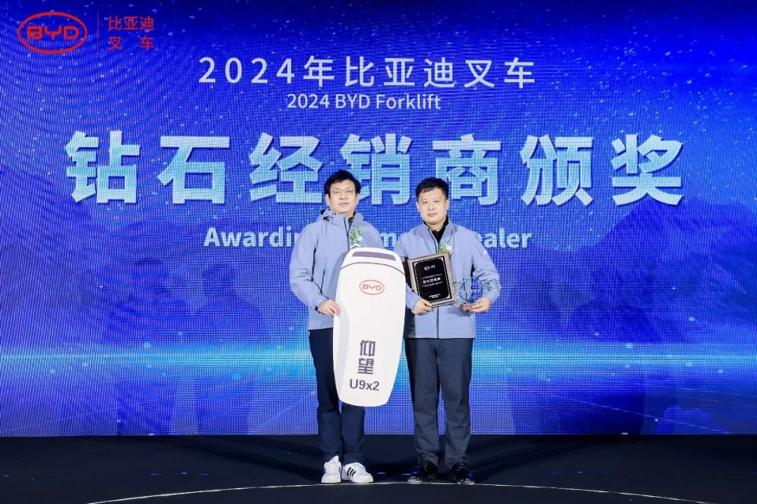 每一项荣誉的获得,都是经销商与比亚迪叉车携手并进、共同拼搏的结晶,承载着他们对产品质量精益求精、服务效率不断提升、客户满意度持续增强的不懈追求。大会分别颁发了战略合作伙伴、钻石经销商、非凡经销商、飞跃成长奖、卓越经销商、杰出经销商等奖项。这些荣誉不仅是对经销商和合作伙伴卓越表现的肯定,更是激励他们在未来继续追求卓越、提升服务质量的重要动力。
