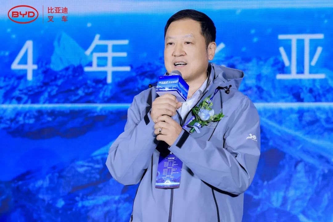 广州佛朗斯股份有限公司董事长侯泽宽作为比亚迪叉车的重要战略合作伙伴,在致辞中表达了对合作伙伴取得辉煌成绩的祝贺,并对未来合作充满期待。他提到,比亚迪叉车凭借优质的产品和高效的服务,在全球市场树立了良好口碑,并强调双方将继续携手合作,共同推动业务的进一步扩展。