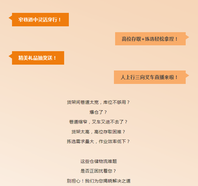 直播预告|爆仓?效率低?卓一人上行三向叉车,为您打破物流局限!