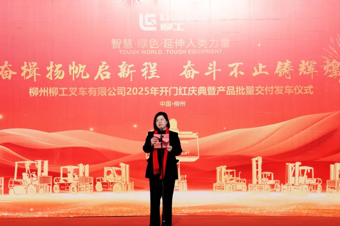 2月4日,柳州柳工叉车有限公司2025年“开门红”庆典暨产品批量交付发车仪式隆重举行。广西柳工机械股份有限公司党委副书记、纪委书记、工会主席李于宁,高级副总裁、柳工叉车董事长俞传芬,柳州阳和工业新区管委会党工委委员、副主任姚芳出席仪式。