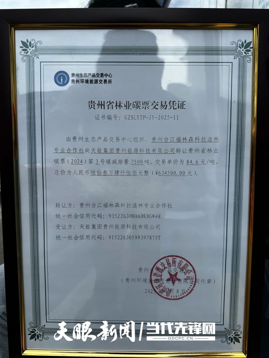 在低碳发展实践中,台江公司积极推动生态价值转化。近日,台江公司依托当地优质杉木林资源,与当地合作社签订首单碳票交易,这单碳票以每吨84.6元的价格售出,实现交易额63.45万元,让“不砍树、能致富”“空气也能卖钱”成为现实。