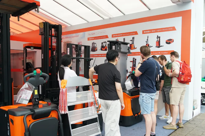 展会期间,诺力展位内外人流如织,新老客户围绕产品性能、应用场景及定制化方案展开深入交流。诺力团队以 “技术讲解 + 实操体验” 双模式,为全球客户提供全流程服务 —— 从设备参数解析到智慧物流场景化应用,从性能测试到售后保障,以专业、精准的服务体系赢得国际市场高度认可。