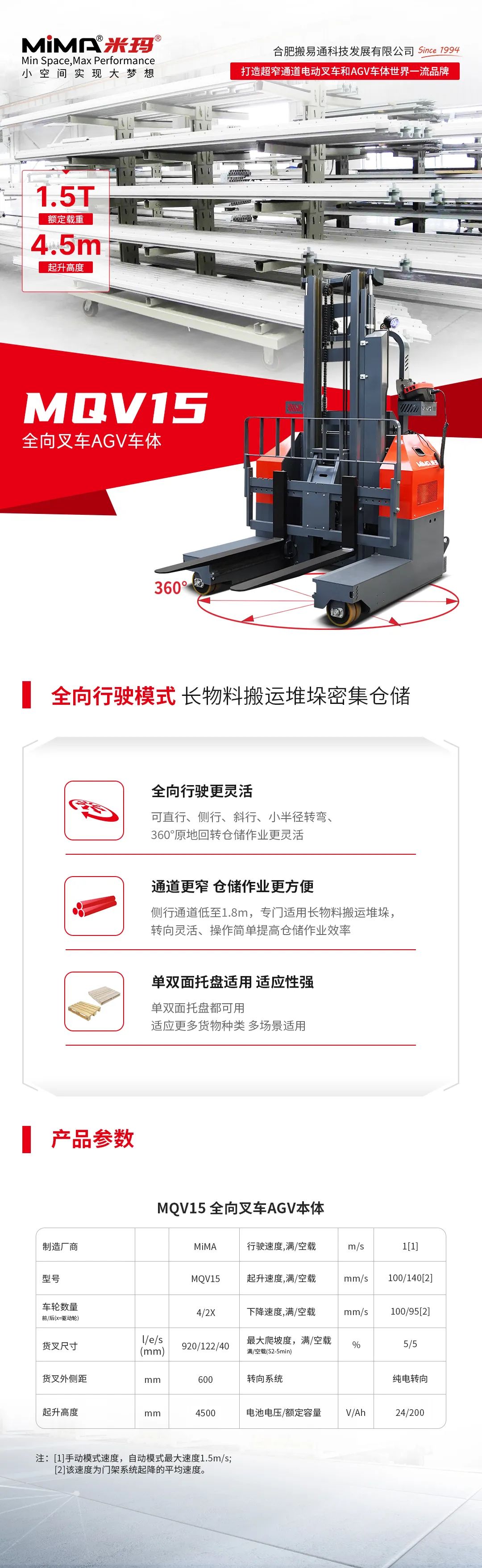 合肥搬易通MiMA全向叉车AGV本体MQV15,长物料搬运智能化的高效之选