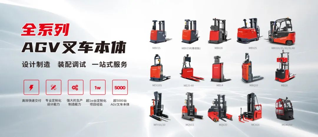 合肥搬易通(MiMA米玛)作为国内领先的全系列AGV车体供应商,自2012年起为AGV厂商提供多款热销且专业的AGV车体产品,产品覆盖室内无人搬运堆垛、室外复杂场景无人化应用,具备全系列AGV无人叉车本体定制化解决方案能力。依托丰富的项目设计经验、资深工程师团队及高效模块化设计,能够确保每个AGV项目实现快速交付与卓越品质,目前已累计交付超5000台AGV叉车本体。