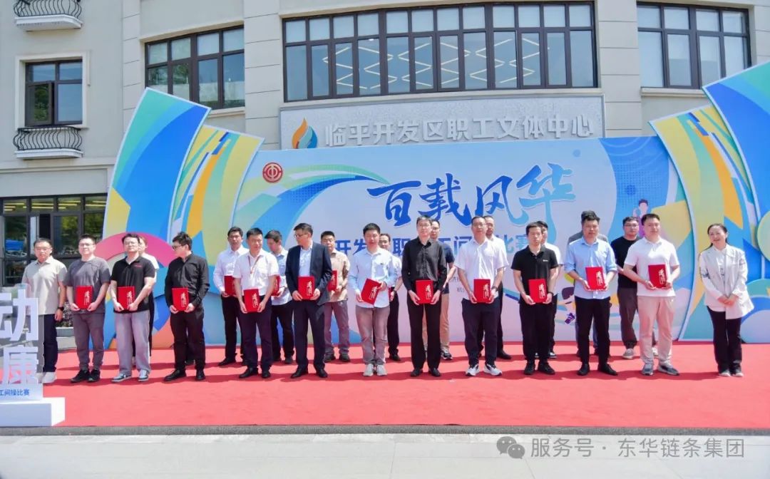 日前,为喜迎中华全国总工会成立100周年和“五一”国际劳动节,临平经开区总工会开展了“新质生产力劳动者”颁奖和2025“百载风华”职工工间操大赛。东华陈丽芬、武道、朱智强三名员工荣获“开发区新质生产力劳动者”称号、东华代表队在工间操大赛中以昂扬之姿从25支参赛队、500多名选手中脱颖而出,勇夺第一名。