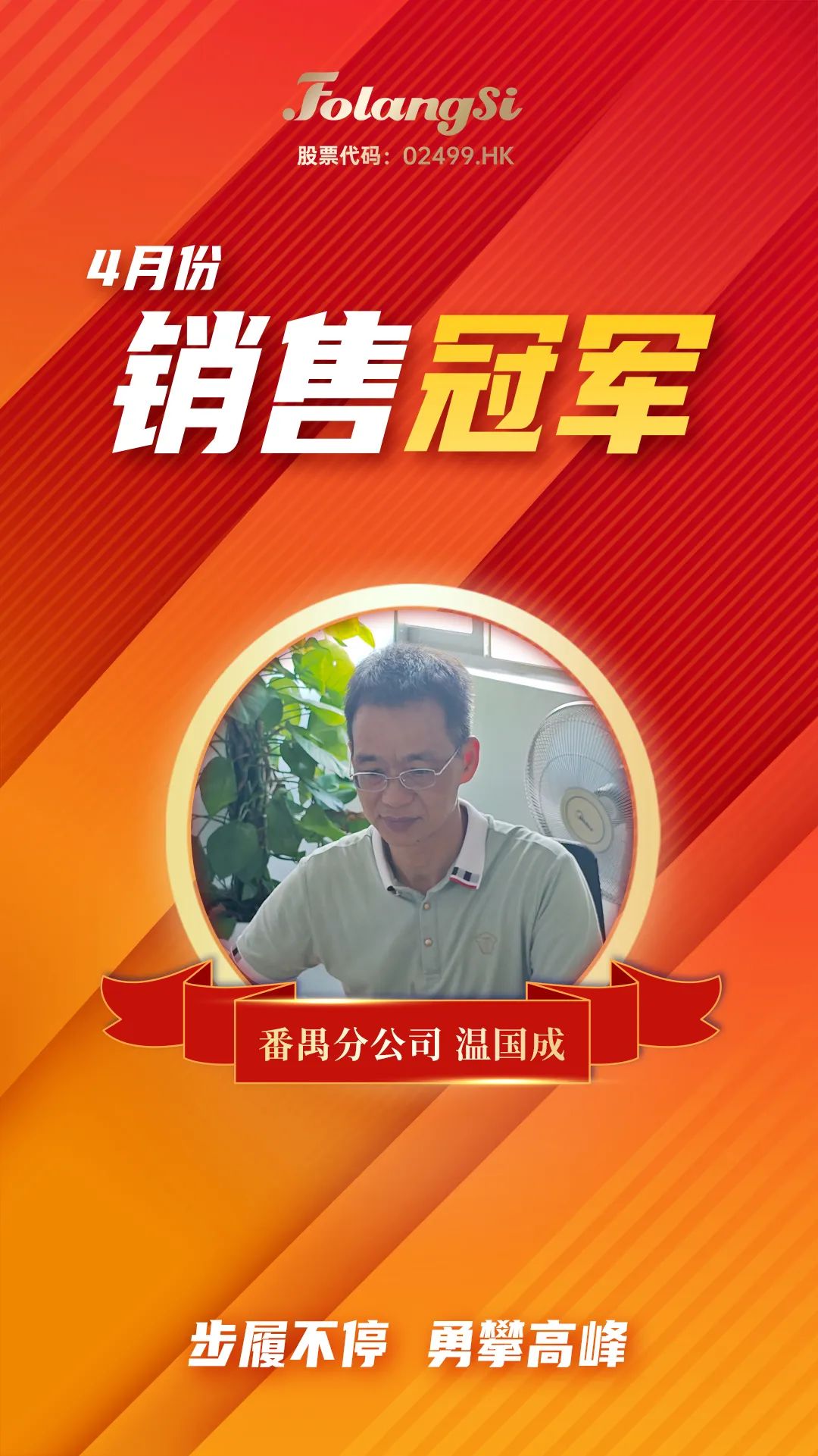 佛朗斯股份番禺分公司温国成荣膺国内事业4月销售冠军