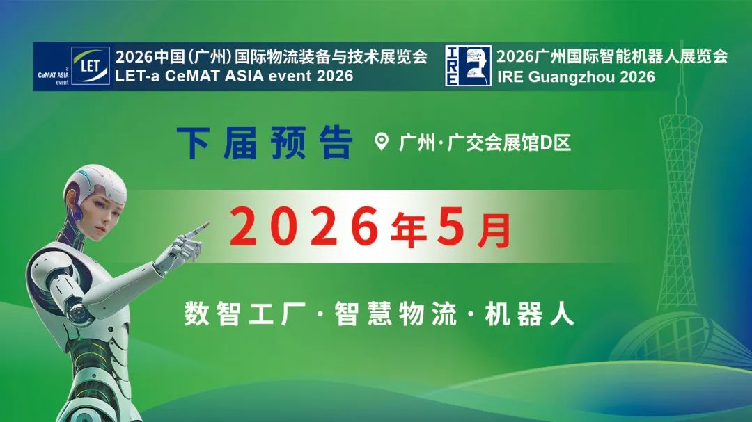 转载 2025-05-26 09:07 LET 来源:LET5月21-23日,为期三天的2025 中国(广州)国际物流装备与技术展览会(LET 2025)、2025 广州国际智能机器人展览会(IRE 2025)在广州・广交会展馆 D 区圆满收官。