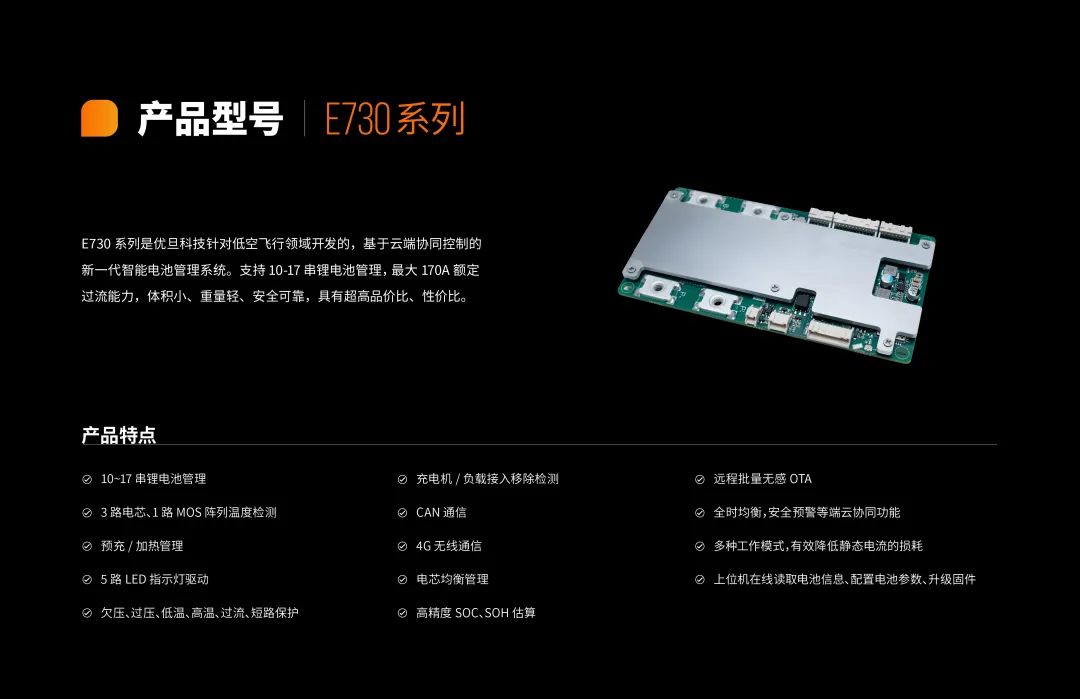 优旦E730智能电池管理系统凭借先进的技术和卓越的性能,在低空物流领域展现出巨大的应用价值,为用户带来更加高效、便捷的物流服务新体验。