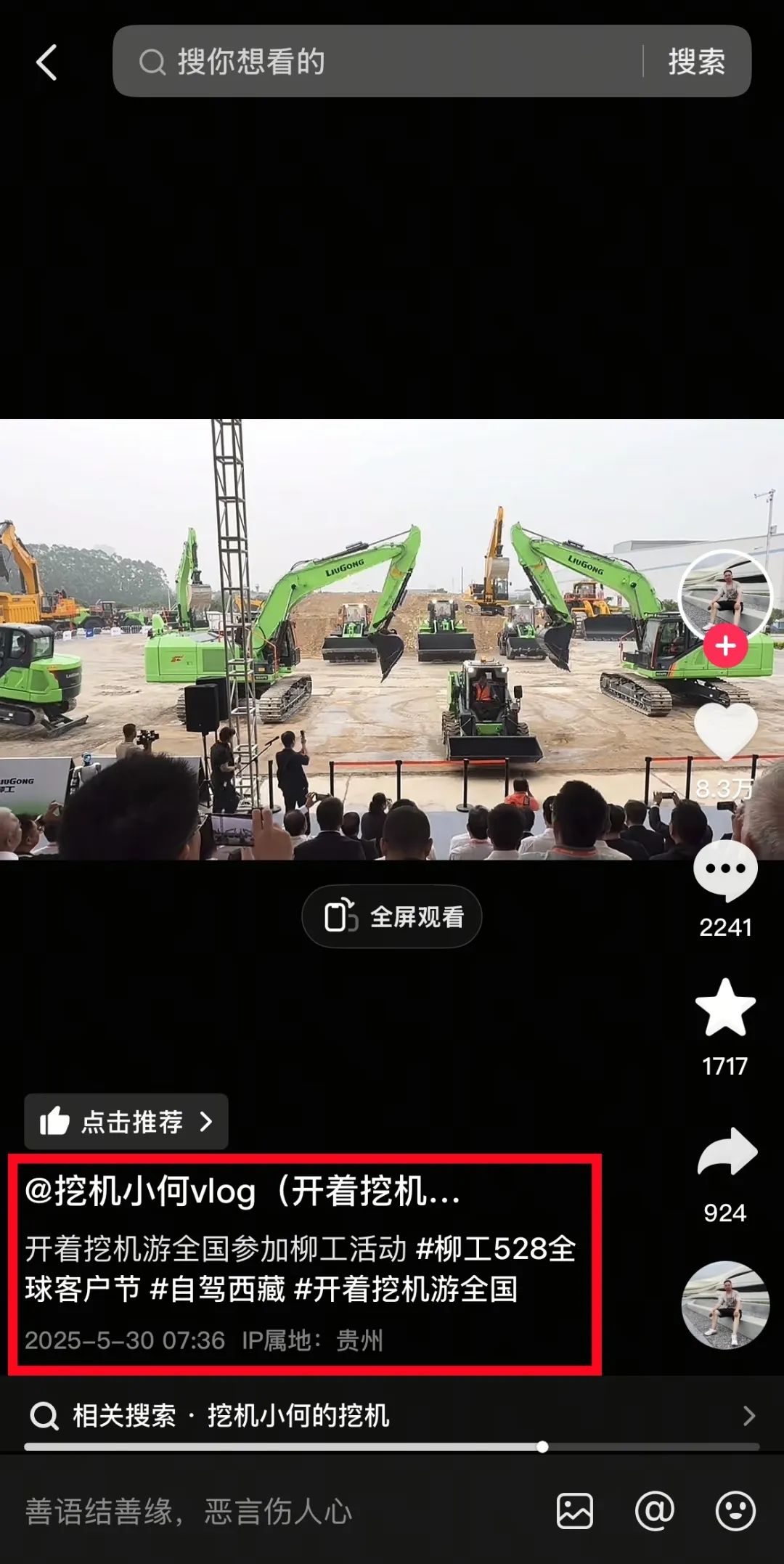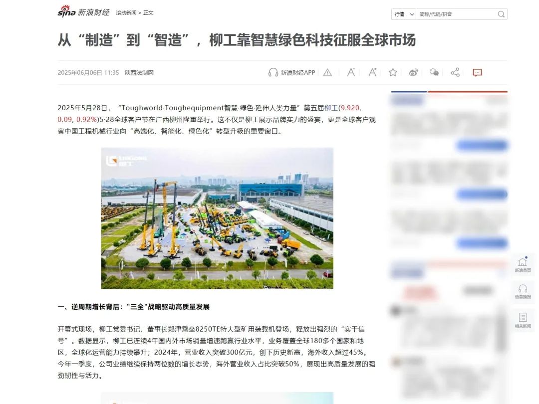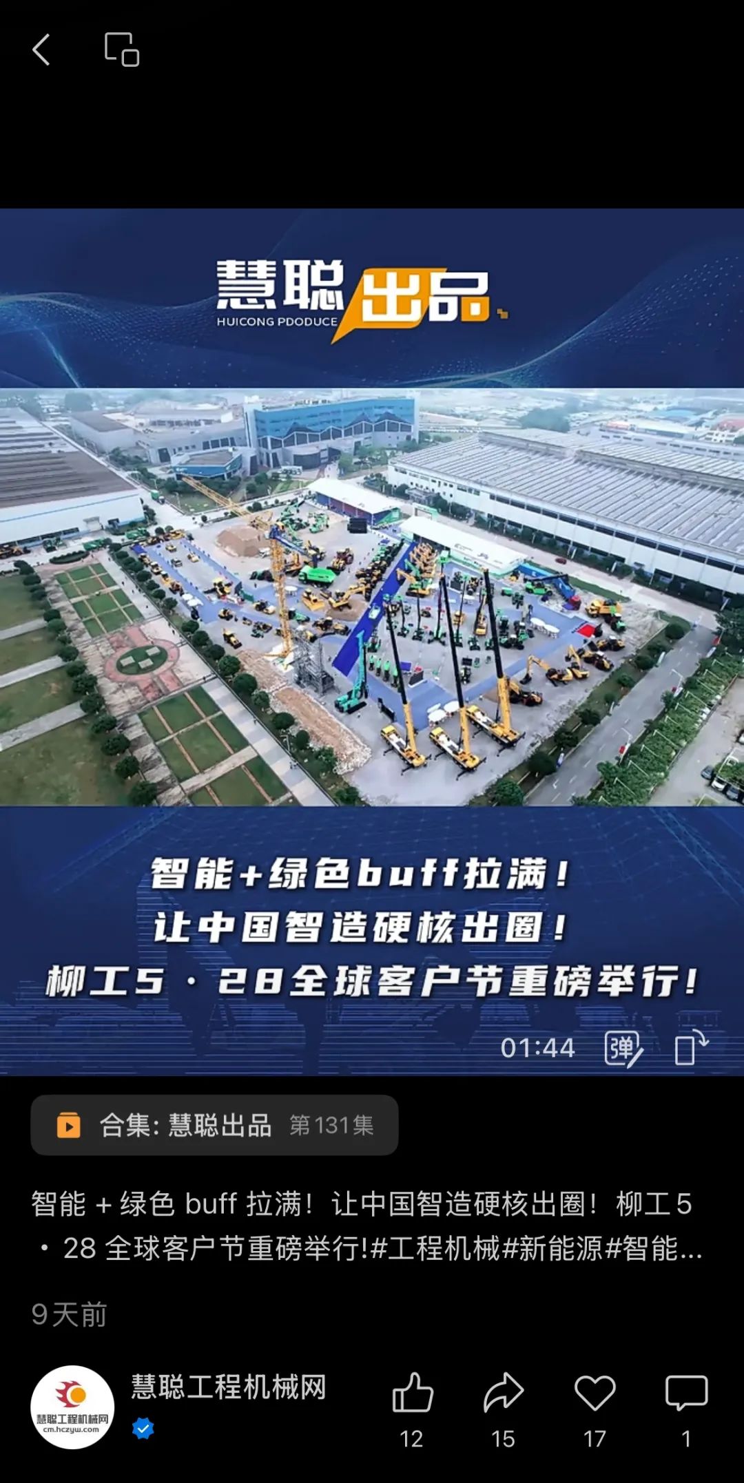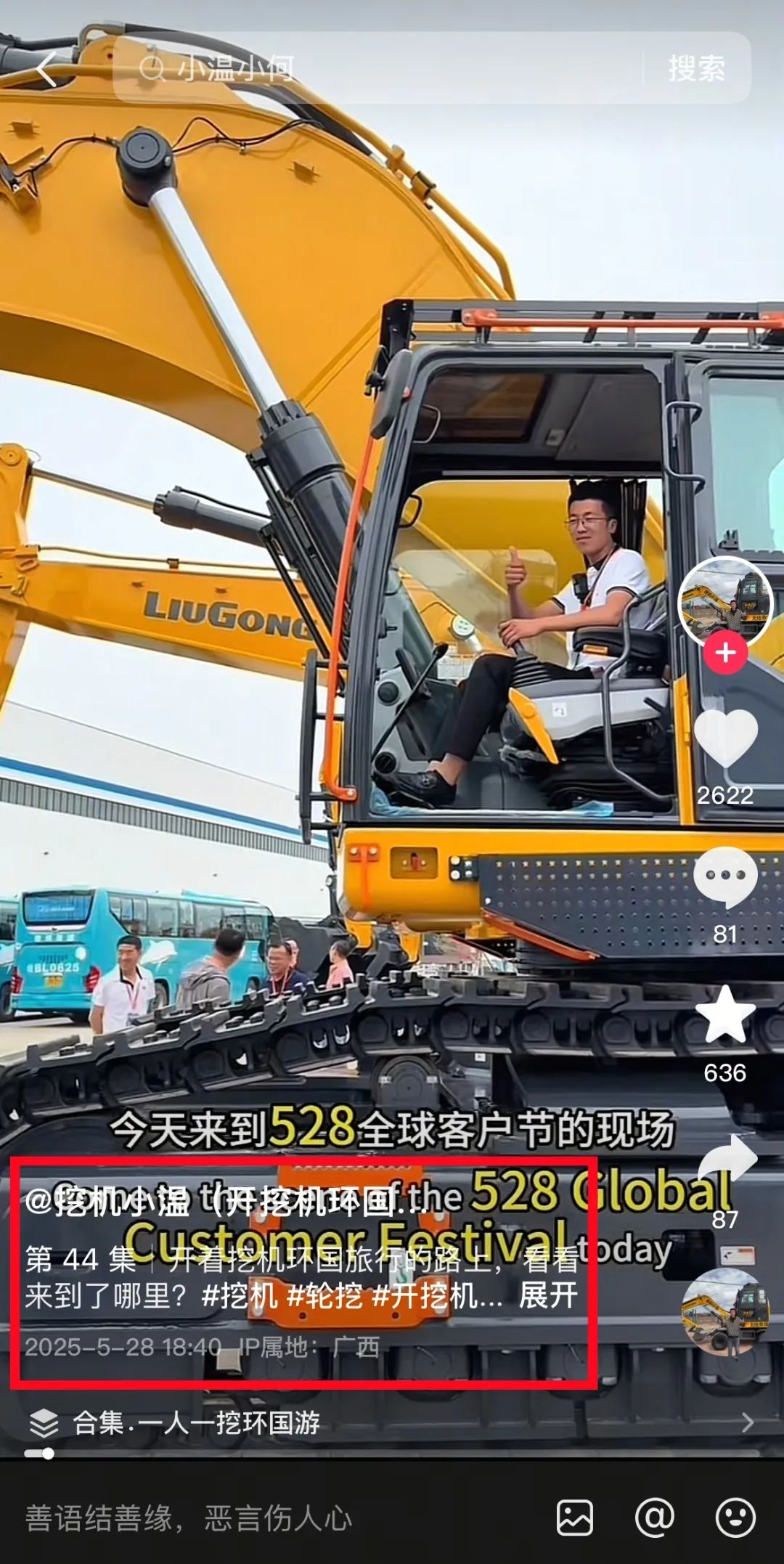 5 月 28 日,第五届柳工 5・28 全球客户节在广西柳州盛大启幕,以“智慧・绿色・延伸人类力量” 为主题,向全球客户展示工程机械领域的创新成果。活动举办至今,广西新闻、中国新闻网、新华网等权威媒体,以及多家行业媒体、多个行业KOL聚焦柳工,深度关注柳工电动化与智能化技术突破、海外市场业绩增长以及未来发展规划。作为行业领军企业,柳工以技术革新与全球化视野,再次成为工程机械领域高质量发展的舆论焦点。