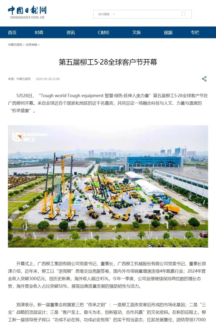 关注!多家媒体聚焦柳工5・28 全球客户节,解码智慧绿色的机械力量