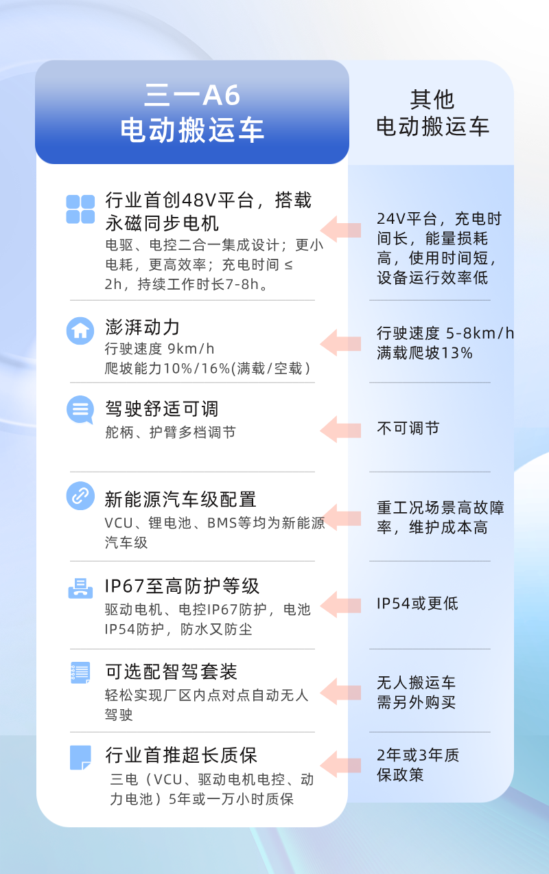 在物流搬运“油改电”浪潮下,搬运车作为物料搬运的关键设备,电动化已成为越来越多企业的选择。面对琳琅满目的电动搬运车市场,为什么全新上市的三一A6是电动搬运首选?