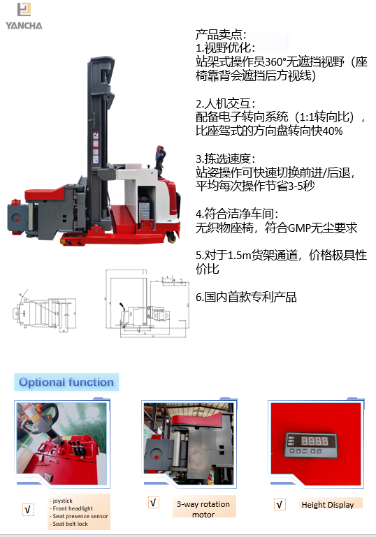 江苏中燕推出全新站驾式三向窄通道叉车