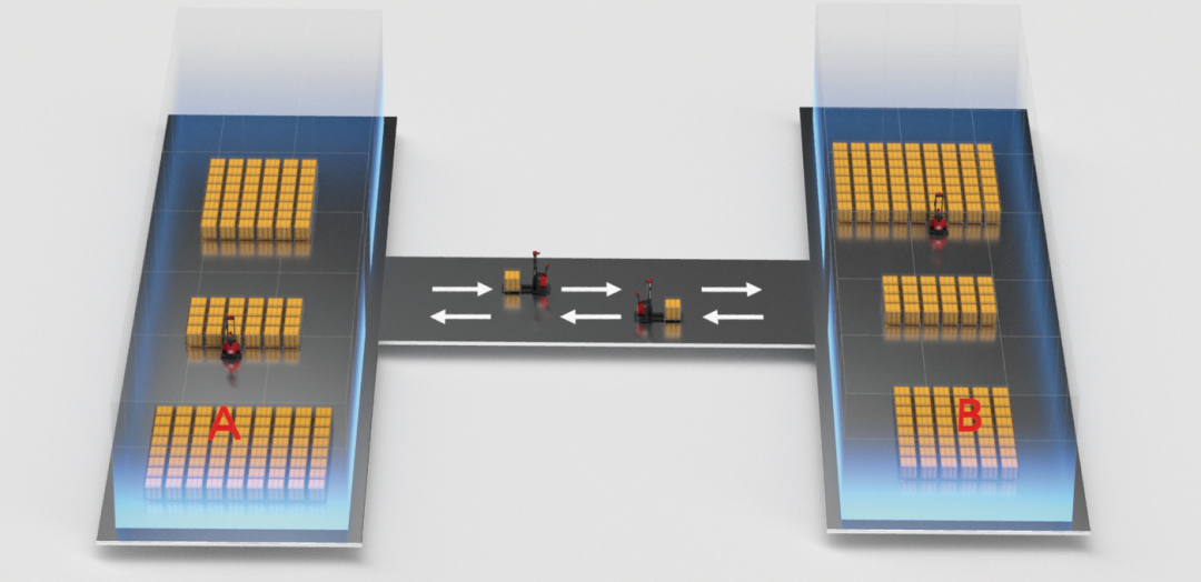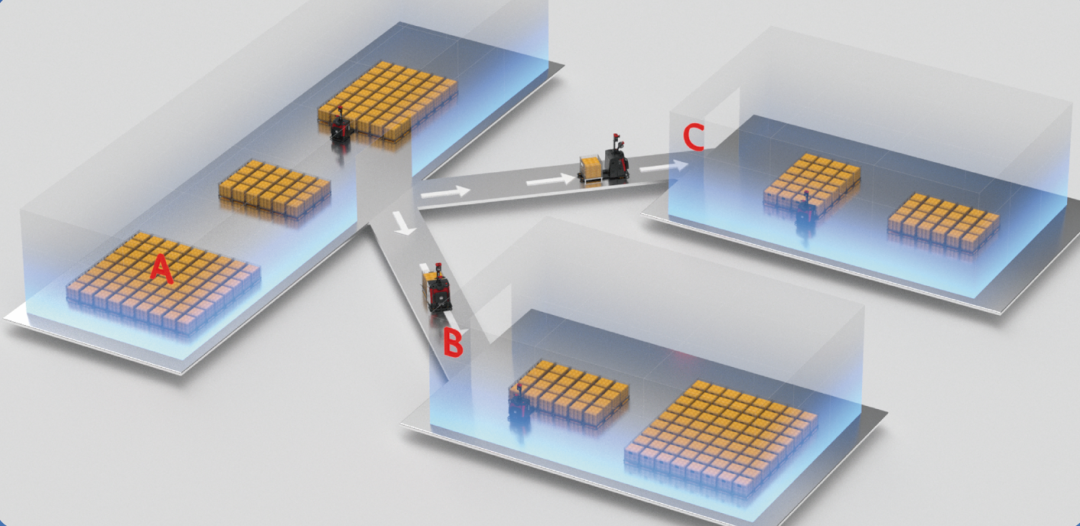 在点到点自动搬运的基础上,EXP15小马进一步实现点到列、点到区的多任务模式。可同时接受多个搬运指令,一车多任务,大大提升仓储搬运效率。
