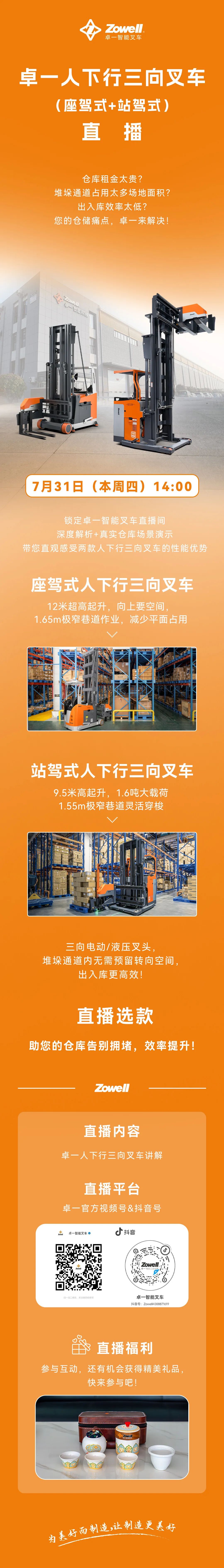 直播预告|省地省成本!人下行三向叉车(座驾式+站驾式)直播专场来了!有抽奖!