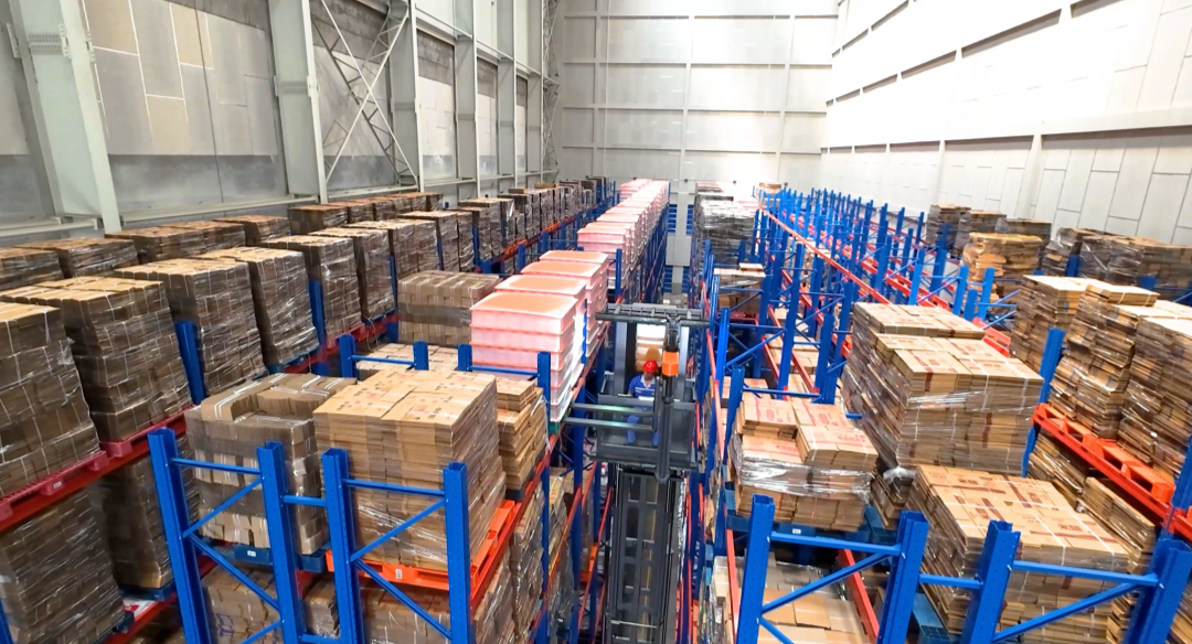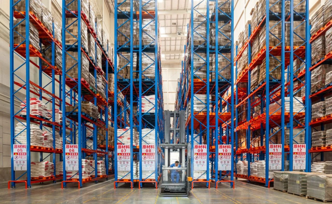 仓库一改此前的地堆式仓储模式,按照卓一规划的窄巷道货架方案,以1850mm的货架间距排列多排13m高货架,为客户业务扩展开发了更多可用库位;配备两台最大载荷1.6吨、最大起升高度13m的人上行三向叉车,轻松实现了高位密集存储。
