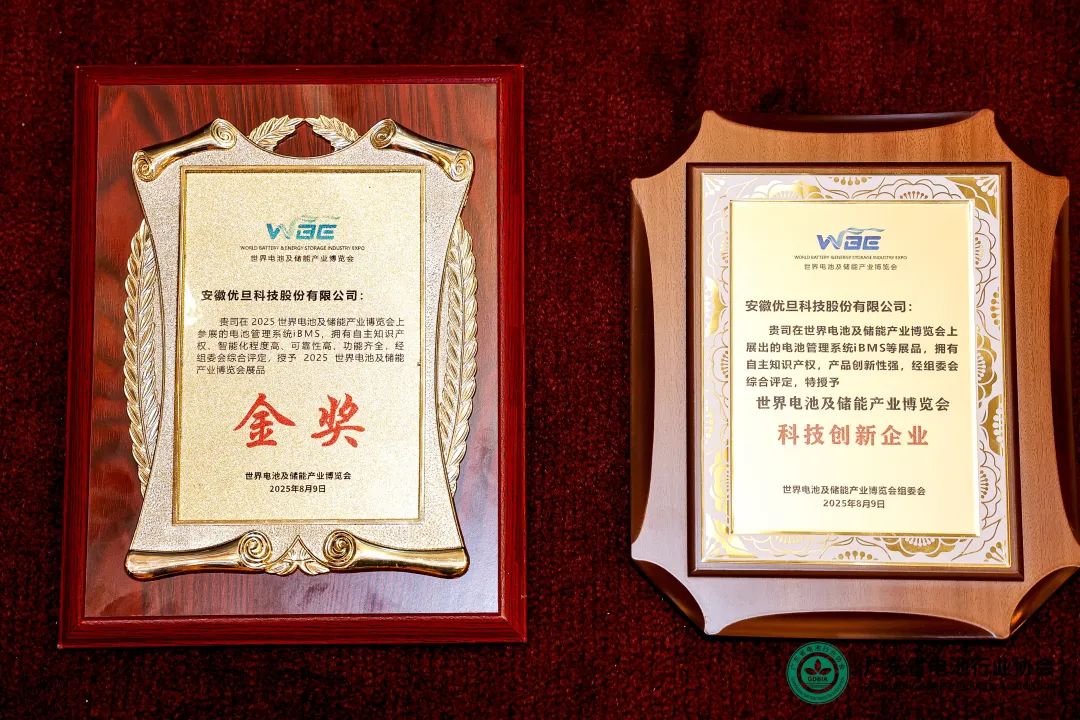 8月9日,2025世界电池之夜暨广东省电池行业协会六周年庆典在广州盛大举行。优旦科技凭借在锂电池智能管理领域的卓越创新与市场表现,斩获“2025世界电池及储能产业博览会展品金奖”和“科技创新企业”两项重磅荣誉。