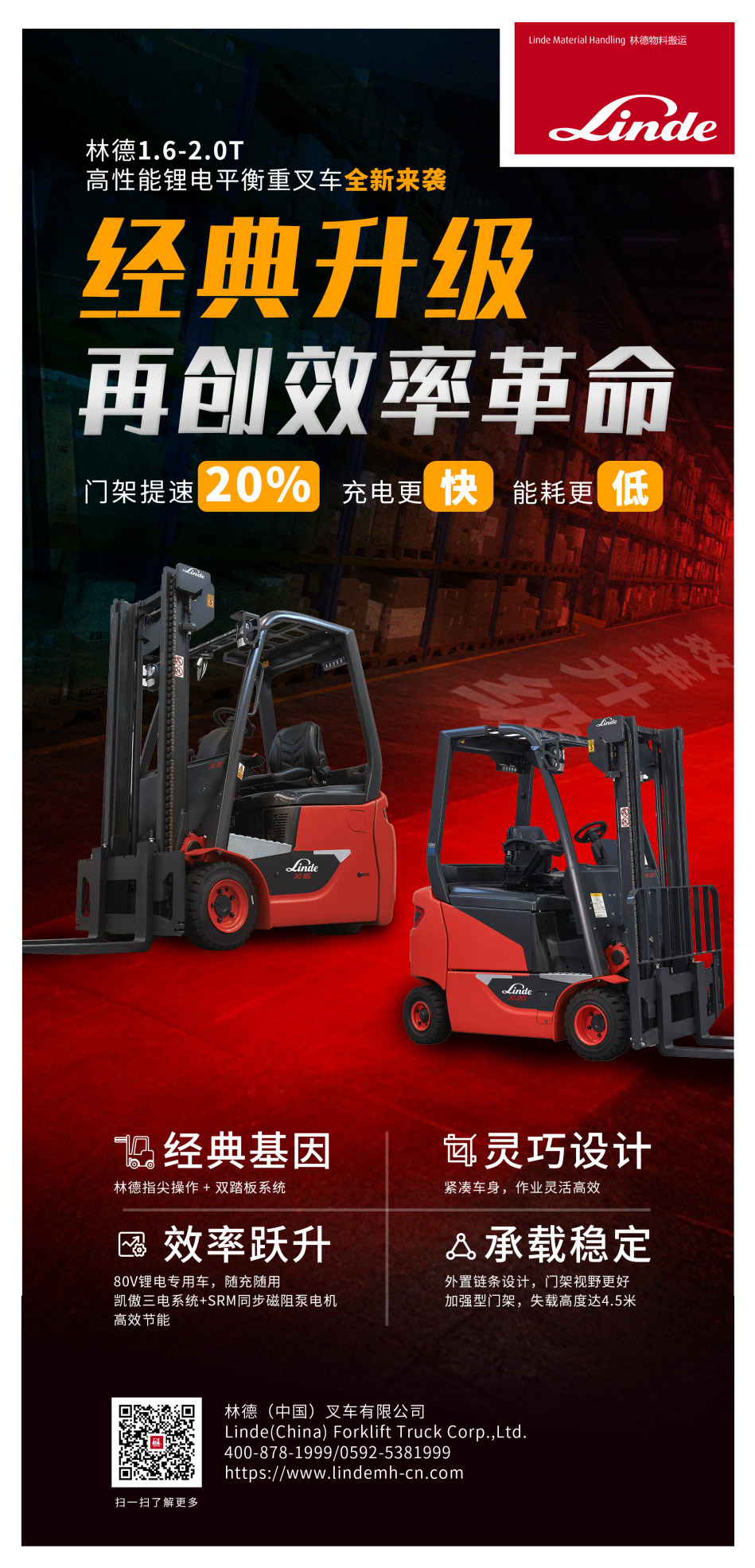 经典再升级 | 1.6-2.0吨林德高性能锂电平衡重叉车焕新而至!
