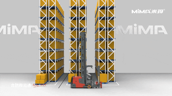 人随车上行,视野更优越,最大定制起升高度达18.5m,货叉可左右侧移及180°旋转,在极窄巷道内,无需转向车体即可完成左右两侧货物的叉取与堆垛。